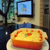 - em uma travessa refratária, coloque uma concha de molho no fundo.