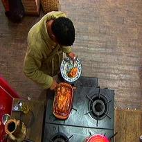- Quando ferver, mergulhe no molho as fatias de berinjela (cortadas no sentido do comprimento, sempre finas) para que cozinhem levemente