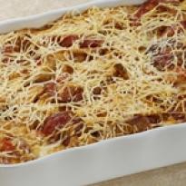 - Disponha em um refratário retangular médio (20 X 31 cm) untado, polvilhe com o queijo ralado, e leve ao forno médio (180 graus), preaquecido, por 25 minutos, ou até dourar.