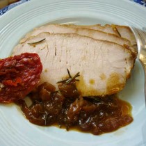 - Doure o lombo em tres colheres de sopa de azeite, no fogo muito baixo.