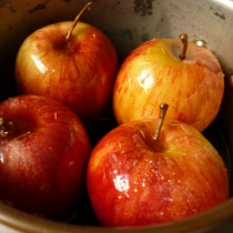 - Arrume as maçãs em uma pequena panela com o cabo de metal, deixando as maçãs bem apertadas no recipiente.