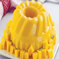 - Desenforme com cuidado e decore com cubos de manga e folhas de hortelã.