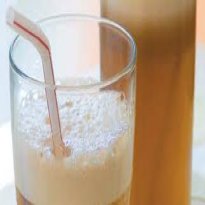 - Despeje a mistura do chá com o suco sobre o sorvete e sirva imediatamente, com uma colher para mexer