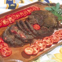 - Na hora de assar, retire da marinada, enrole em papel celofane especial para churrasco (5 voltas) e leve à grelha a uma distância de 45cm do braseiro forte durante 2 horas, virando-a a cada meia hora para obter um assado uniforme
