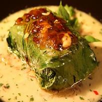 - Na hora de servir aqueça a calda de leite de coco e acrescente a pupunha, os cogumelos, o coentro e a pimenta dedo de moça
