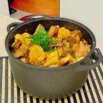 - Agora coloque o cabrito temperado, refogue bem