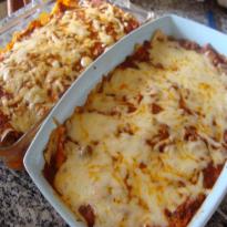 - Misture um pouco da carne moída com metade do molho e espalhe por cima das panquecas, polvilhe mussarela ralada e leve ao forno para gratinar.