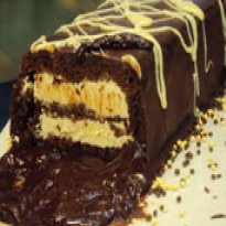- Coloque mais uma camada de sorvete e termine com a fatia restante do bolo