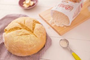 - Coloque a massa em uma assadeira polvilhada de fubá, faça os cortes que desejar na parte de cima do pão, polvilhe mais fubá. Leve-o ao forno preaquecido a 180 ºC por aproximadamente 40 minutos.