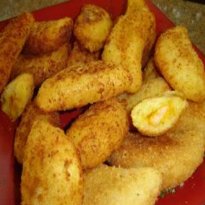 - Amasse tudo, abra, corte rodelas, recheie a gosto, feche e aperte com o garfo e frite em óleo bem quente.