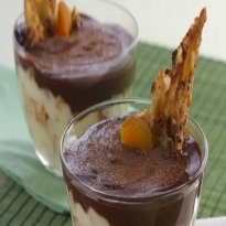 - Em taças ou em um refratário, intercale os cubos de panetone com o creme de maracujá. Coloque a cobertura de chocolate. Decore com as nozes e as cerejas e leve à geladeira. Sirva gelado.