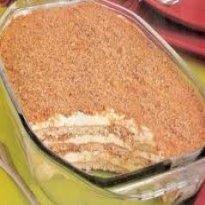 - Em uma travessa coloque uma camada de bolacha umedecida com o leite e o rum