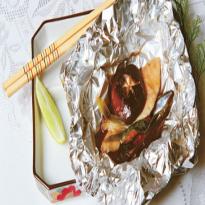 Peixe assado em papel-alumínio