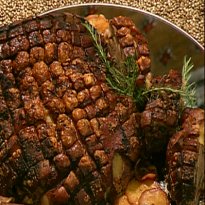 - Retire do forno, tire o barbante, fatie o pernil e sirva em seguida.