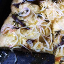 - Espalhe por cima a cebola cortada em anéis finos. Asse o pão no forno alto por aproximadamente por 20 minutos.