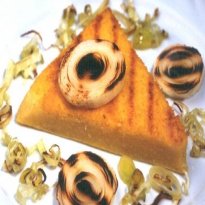 - Coloque as polentas grelhadas num prato e sirva a seguir com o alho-poró dourado e as rodelas grelhadas.