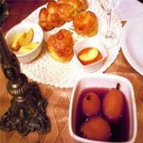 - Deixe esfriar por 5 minutos, coe e cubra as pêras