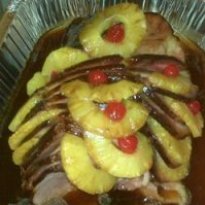 - Regue o presunto com a calda. Asse o presunto descoberto no forno pré-aquecido durante 1 hora. Decore com fatias de abacaxi e cerejas.