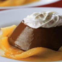 Pudim de Chocolate e Calda de Pêras no Licor