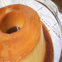 - Faça a calda primeiro, numa panelinha ponha o açúcar e sem ficar mexendo deixe derreter, ponha a água fervente e mexa até dissolver, despeje em forma própria para pudim espalhando a calda por sobre toda a forma e reserve.