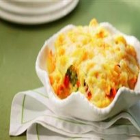 - Espalhe o recheio no refratário e cubra com a mistura de batatas restante.