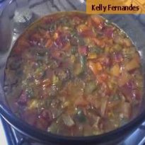 - Depois de tudo cozido acrescente o tomate, pimentão e a cebola, deixe ferver