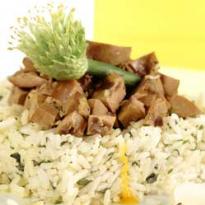 - arrume os rins nos pratos, regue com o molho, sirva com o arroz com ervas e decore com as lâminas de castanha-do-pará fritas