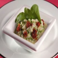 - Tire do fogo. Junte manteiga e tomate seco. Mexa com cuidado. Tampe panela. Sirva após 2 min. a minirrúcula decora