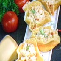 - Misture novamente e sirva nas cestinhas de parmesão.