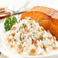 - Acrescente o arroz carnaroli e dê uma leve refogada