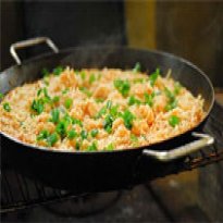 - Despeje sobre o risoto o acompanhamento que desejar (frango, cabrito, porco, miúdos, tripas...), já preparado, e deixe cozinhar por mais 5 minutos