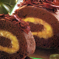 - Desenrole o rocambole e espalhe o recheio, reservando uma parte para a cobertura. Enrole-o novamente (sem o pano, claro!), acerte as extremidades com uma faca afiada e espalhe por cima a cobertura. Decore polvilhando o chocolate meio amargo ralado sobre a cobertura.