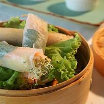 Rolinho vietnamita de camarão e legumes