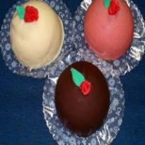 - Encher as forminhas com o bavaroise de rosas e colocar uma bombinha recheada no meio
