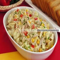 - 2 xícaras (chá) de frango cozido e desfiado (peito, coxa, sobrecoxa, etc)