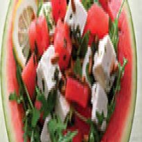 Salada de Rúcula e Melancia com Queijo Feta e Pinhões