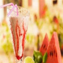 - Bata no liquidificador a melancia, as framboesas, o suco de limão e o sorvete de creme até ficar homogêneo.