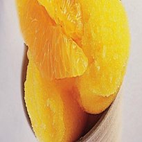 - Bata o gengibre, a fruta com a calda e a calda de açúcar no liquidificador