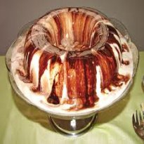 - Unte uma forma para pudim com a água e o chocolate em pó. Despeje o creme e leve para o congelador por cerca de 2 horas ou até que esteja firme. Desenforme-o e corte-o em fatias.