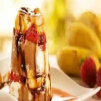 - Faça outra camada de banana e morango e cubra com outra bola de sorvete