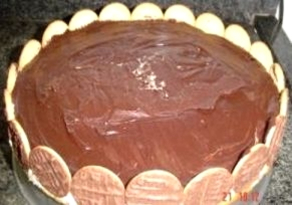 - Em um refratário coloque o biscoito umedecido no leite. Enfeite as laterais da forma antes de colocar o creme.