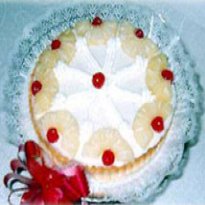 - Desenforme e decore com chantilly fatias de abacaxi e cerejas.